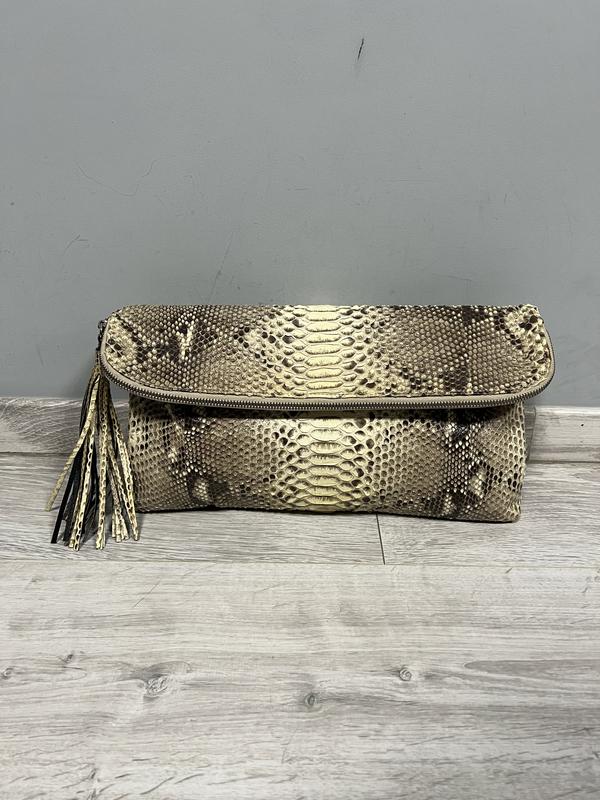 Великий клатч сумка з шкіри пітона в ідеальному стані. Розмір: Висота 21см. Ширина 38см. Глибина дна 4см.