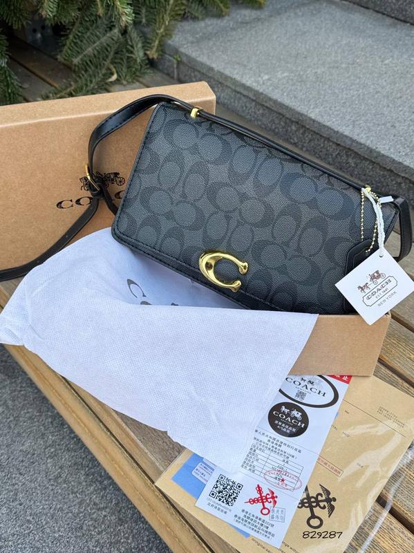 Сумка Coach багет идет в люкс упаковке ✅ 2 отдела; на кнопке Ручка и ремешок регулируется Материал: экокожа Размер: 25/16 Цвет: черный
