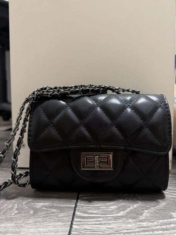 Элегантная кожаная сумка черного цвета с классическим стеганым ромбовидным узором. Оснащена металлической цепочкой, которую можно носить как через плечо, так и в руке. Особенности: • Материал: натуральная кожа • Стеганый дизайн с ромбовидным паттерном • Металлический поворотный замок • Цепочка для ношения • Компактный размер для повседневного использования Идеально подходит для вечерних выходов, прогулок и ежедневного использования. Универсальный черный цвет легко сочетается с любым гардеробом