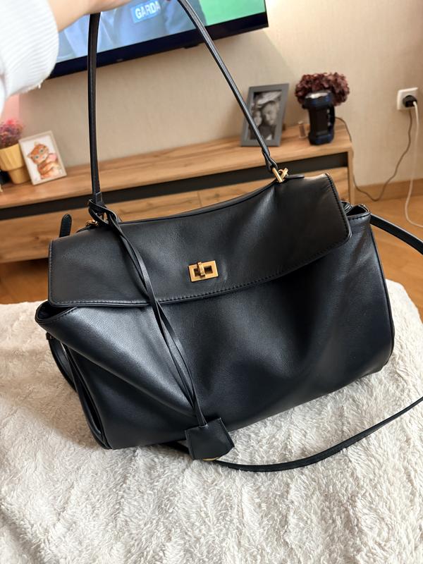 Продам шкіряну сумку чорного кольору. Має два ремінця. Всередині два відділення та кишеня на заморочку. Ззовні позаду теж є дві кишеньки. Збоку є регулятори. Можна розширити відділення сумки. Довгий ремінець регулюється. Також сумка має дві застібки. Шкіра дуже гарної якості. В містка, можна під формат А4, при цьому не громіздка і пасує до всього.