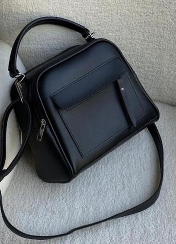 Абсолютно нова чорна сумка з якісної еко шкіри. Була куплена і не користована, лежала в шафі і трішки втратила форму , але легко можна вирівняти.