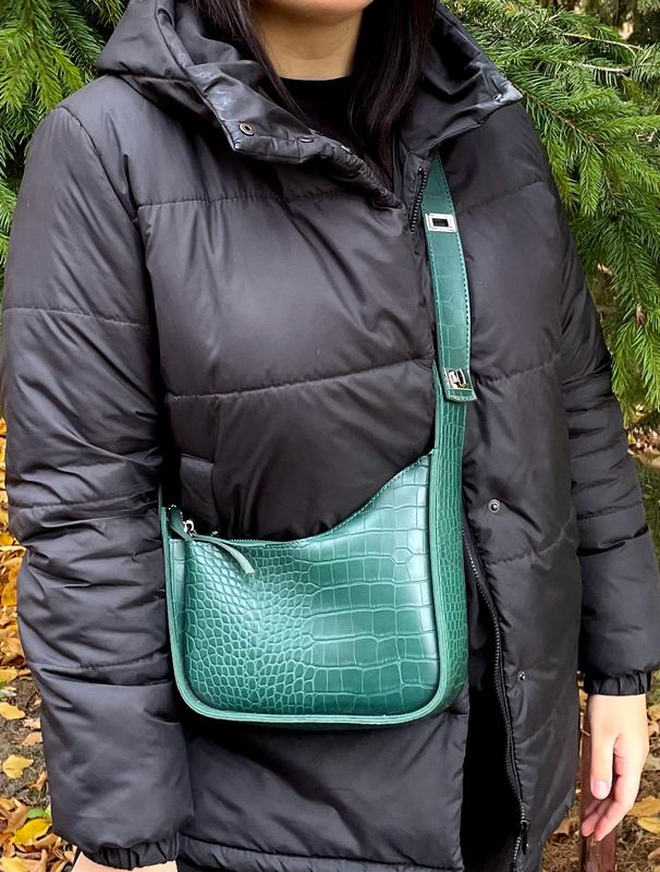 Яскрава зелена сумочка через плече. Маленькая и стильная, она придаст яркости твоему образу. Цвет как на первых снимках меняла молнию, дефектов нет, в середине один отдел, ремень регулируется по длине