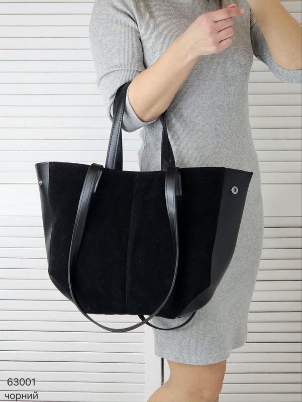ЗАМЛЛЕНИЕ С ОПЛАТОЮ ПРИ ДОСТАВЦЕ ТОЛЬКО НОВОЙ ПОШТОЙ УТОЧНЯЙТЕ НА ВСЯК СРЕДСТВО НАЯВНОСТЬ Очень красивая СУМКА-ШОПЕР с НАТУР. ЗАМШИ и эко кожи, держит форму, ФОРМАТ А4🔥 ФУРНИТУРА: серебро РАЗМЕРЫ: Ширина по низу - 18 см (ширина вверх - 46 см), высота по центру - 29 см, глубина - 11 см + короткие ручки и длинные ручки ( 67 см) МАТЕРИАЛ: НАТУР. ЗАМША + эко кожа., подклад - плотная ткань СОСТАВ: один отдел, сверху закрывается на молнию. Внутри есть открытый карман и карман на молнии. По бокам сумки есть кнопки, за счет которых сумка уменьшается или увеличивается КОД: 63001