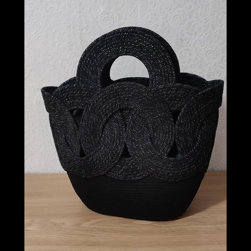 Сумка ручной работы, с черным люрексом с подкладом и на молнии. Высота с ручками 33 см, без ручек 22 см, по дну 19*10 см