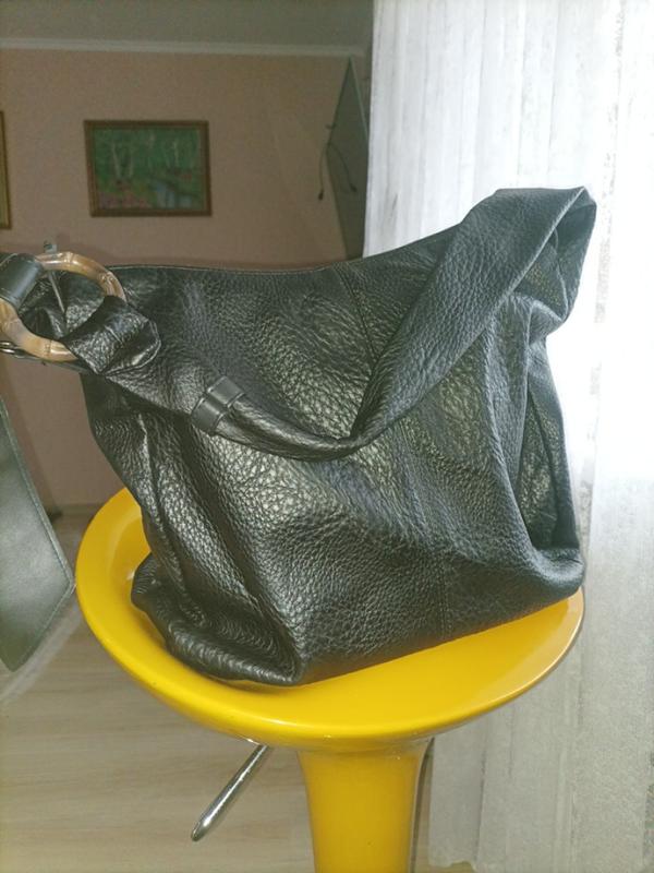 жіноча сумка в ідеальному стані підкладка чиста верх якісна еко шкіра не затерта в середині 3 відділи 3 кармани в середині 47 см ширина 35 см висота 15 см дно 65 см ремінець на плече збоку карман дуже вмістка і якісна чорна