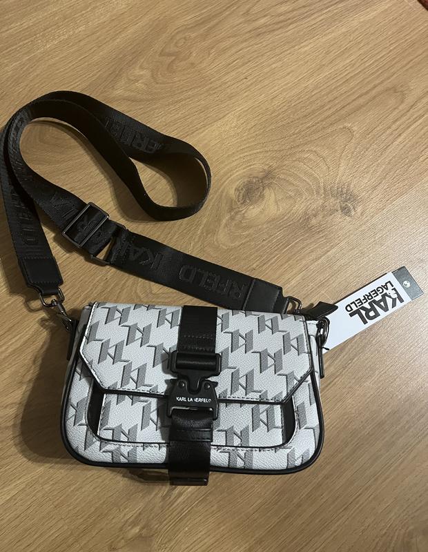Особливості: • Фірмовий монограмний принт «KL» у чорно-білій гамі • Практичний розмір: 22×16×5 см • Регульований плечовий ремінь з логотипом