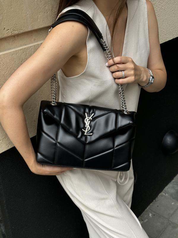 Сумка puffer saint small in nappa leather black laurent silver chain