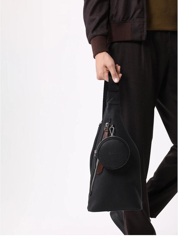 Чорна сумка з натуральної зернистої шкіри від SANTONI. -Модель витягнутої форми з регульованим ременем на плече на застібці-фастекс, функціональними кишенями всередині і зовні, тисненням логотипу бренду, круглим футляром на карабіні для ключів або необхідних дрібниць. Бренд Ціна зі знижкою Розмір 40*22*6 Відмінний вибір для елегантного образу! Привезла з Італії Відправляю наложеним по предоплаті