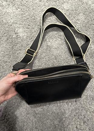 Сумка на плечо, два отдела отдельные на молниях,вместительная В хорошем состоянии без царапин, ручка из материала похожего на ткань.Длина ручки 38 см с гарнитурой Красиво относилась сезон, раздумываю материал жилой.
