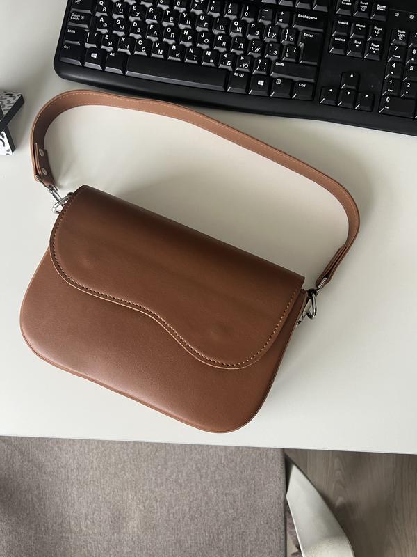 Сумочка рыжего цвета, это кожзам. Стан идеален. Имеет длинный ремень, чтобы носить через плечо.