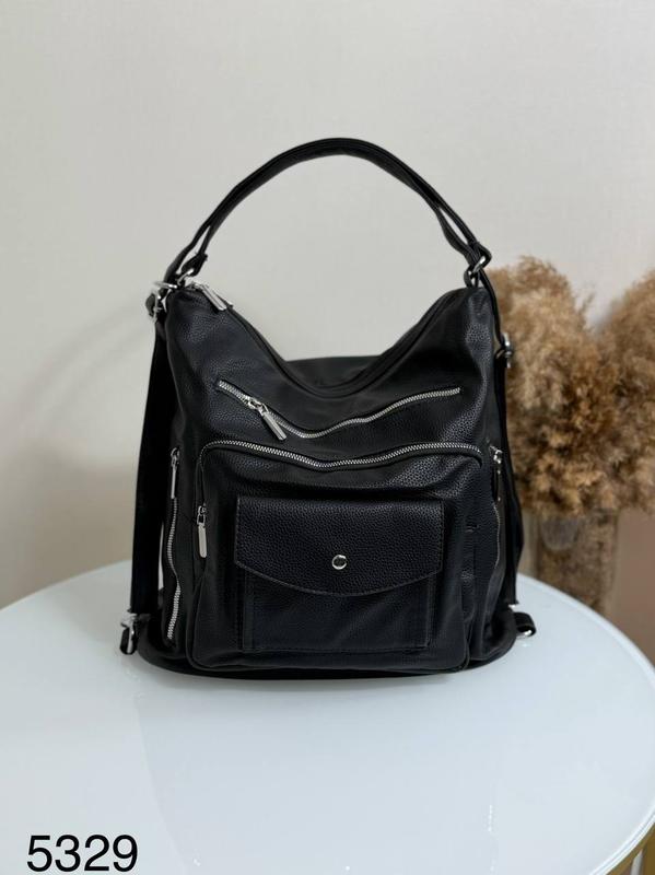 Новинка Сумка-рюкзак Код 5329 Екошкіра 34х33х11 Всі кишені та блискавки-діючі⚠️ Два основних відділи на блискавці. Всередині кишеня на блискавці та відкрита кишеня. На лицевій стороні 4 відділи на блискавці та кишеня під клапаном. На звороті кишеня на блискавці.