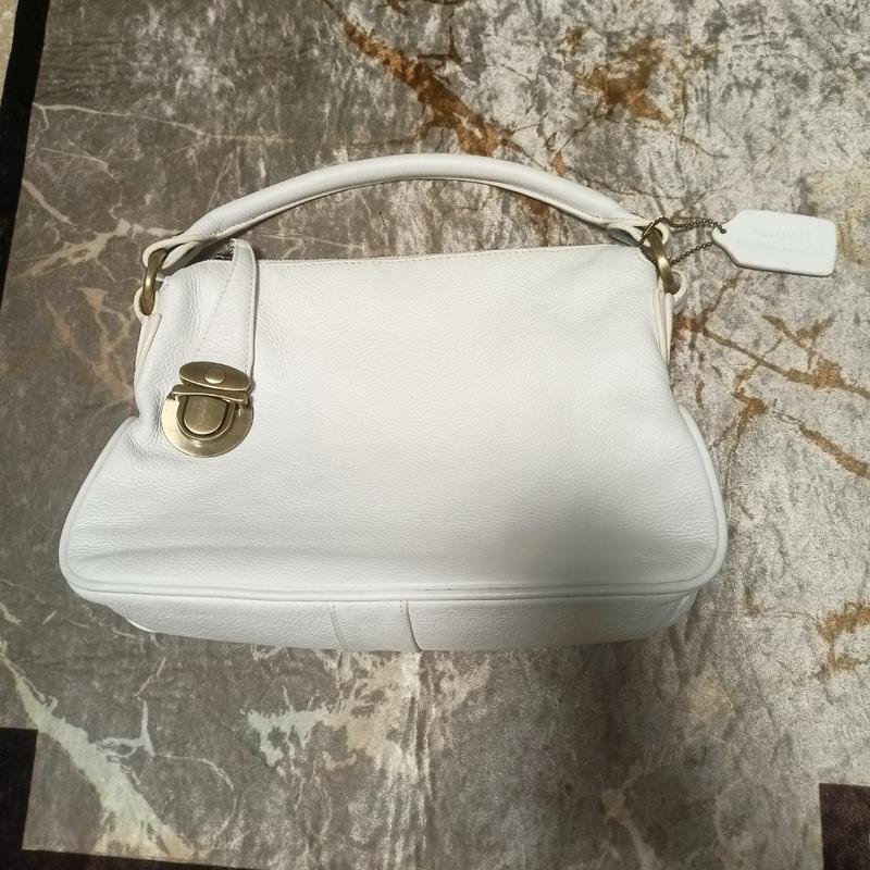 Сумка из очень качественной кожи, вместительная, чистый белый цвет. Очень красивая, необычная фурнитура