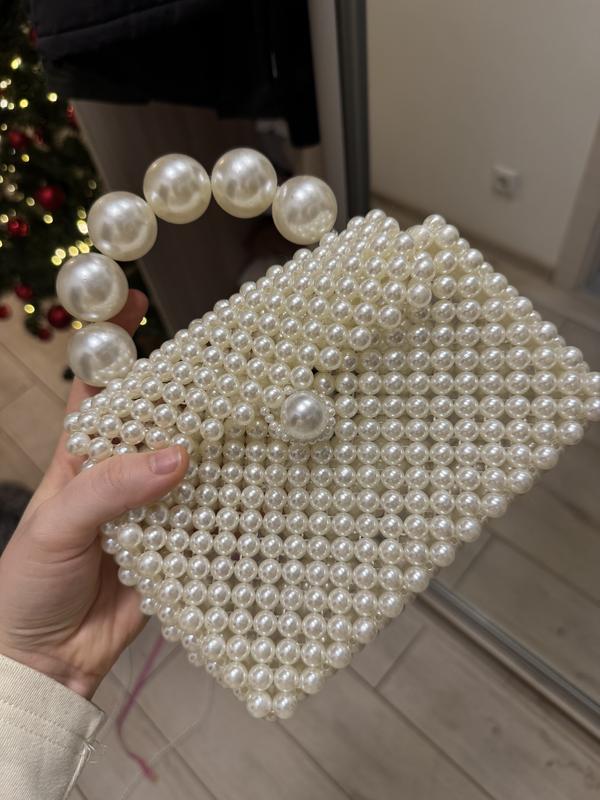 Сумка з білих молочних намистин. Нова. Тримає форму. Дуже ніжна. Розміри: Висота 10см, максимальна - 14см Ширина 19см Збоку 7-8см Є довгий ремінець з бісеру, він знімний