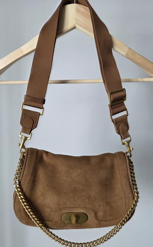 Замшевая сумка Mango с цепочкой через плечо и съемным ремнем для ношения crossbody. Стан как новый. Размер 25x18x8 см.