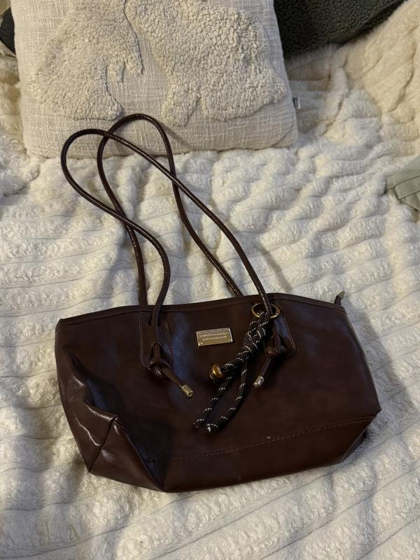 Коричнева сумка, є лише невеликий дефект на брязкальці, бо виймала звідки кульку, яка видавала звук при носінні