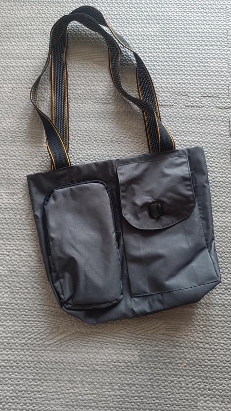 Сумка серого цвета, с двумя внешними карманами, которые достаточно крупные и закрываются. Внутри же карман на липучке и общее одно большое отделение. Сумка красивая, вместительная и непромокаемая