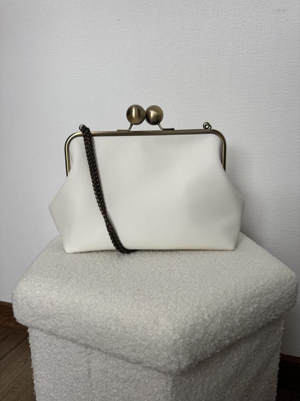 Сумка на ланцюжку у кольорі слонової кістки ручної роботи Ланцюжок складений вдвоє - 59 Висота - 19 Ширина - 25х9 Екошкіра Товар поверненню та обміну не підлягає