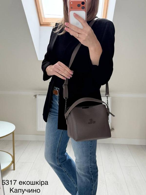 Сумочка на багато відділень🔥 Виробництво Україна 🇺🇦 (постійний відшив) Код 5317 Екошкіра структурована 22х20 Коротка ручка та довгий регульований ремінь. Максимальна довжина 120 см. Три відділи: один на блискавці. Всередині кишеня на блискавці та відкрита кишеня. Два відділи на магнітах. Всередині кожного відкрита кишеня.