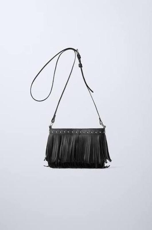Сумка с регулируемым плечевым ремнем и бахромой. Имеет застежку-клипса. Размер 10х13.5х5 см
