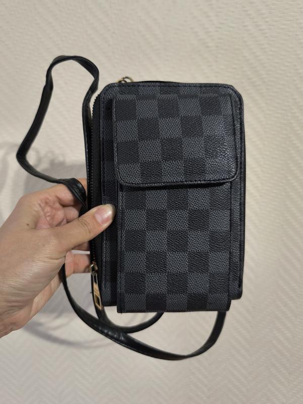 Сумочка для телефона 19\12\3 см, ручка 134 см Материал искусственный, состояние очень хорошее, незначительный след использования находится на бегунке.