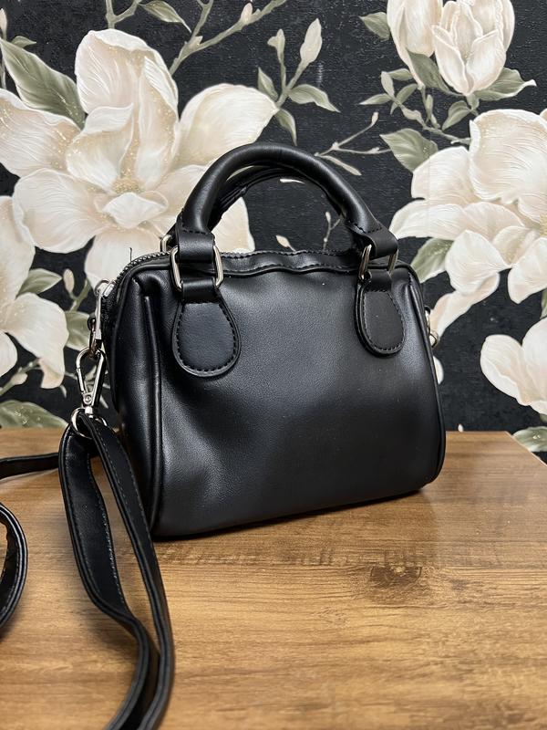 Чорна міні сумка на замочку з ремінцем срібна гарнітура