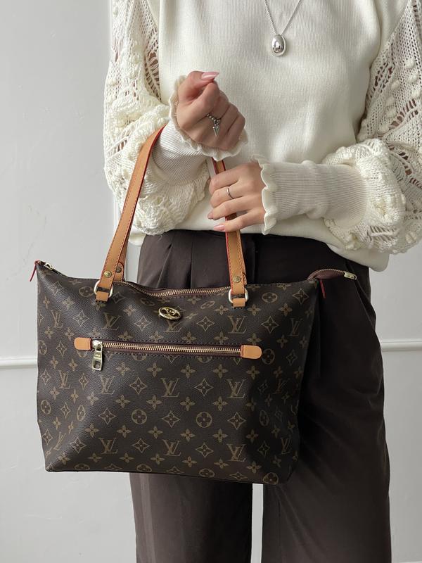 Жіночій шопер На лицьовій стороні розташована кишеня на блискавці. Усередині — одне основне відділення з двома відкритими кишенями, тисненим фірмовим логотипом, біркою із серійним номером та QR-кодом. Фурнітура — у золотистому кольорі, з брендованими елементами Матеріал: еко-шкіра Розмір: 41.5*28.5*10.5см Висота ручок — 20 см. ⭐️Відео/фото файлом в коментарях ⭐️ Пильовик в комплекті Код Gallery Tote шоколадний 20263-1 Gallery Tote бежевий 20263-2 Gallery Tote молочний 20263-3 сірий 20263-4 коричневий 20263-5