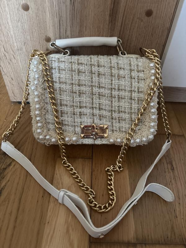 Сумка с жемчугом Фурнитура золото На застежке Внутри карман на молнии Подкладка под кожу Ручка регулируется Следы носки только на ручке ( фурнитура )