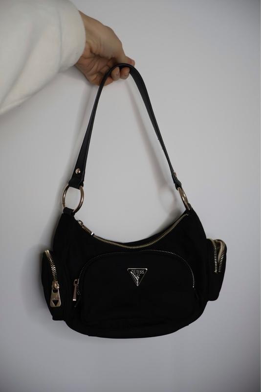 Оригінальна сумка Guess у відмінному стані (5/5). Носилась лише 1-2 рази. Guess носиться роками і залишається у відмінному вигляді Особливості: • Матеріал: текстильний, гладкий • Колір: чорний з золотистою фурнітурою • Розміри: 24×14×8,5 см, довжина ручки 50 см • Багато відділень: основне, 2 бічні кишені, задня та передня кишені • Дуже містка конструкція • В комплекті пильник(!!!) • Довгої ручки немає Ідеально підходить для зимового сезону під пуховик або шубку. Класичний чорний колір поєднується з будь-яким гардеробом Купувала за 3300 грн