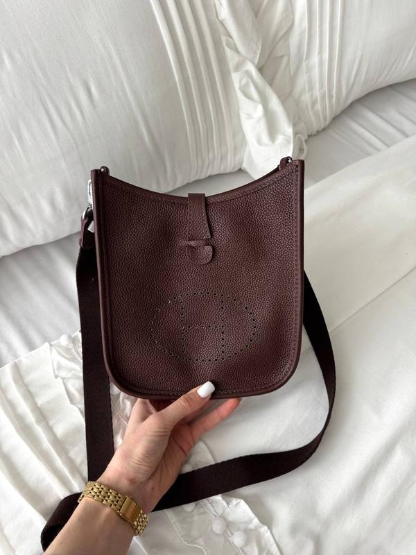 💎 Hermes Evelyne Chocolate Арт. P15053 ▫️Материал: Кожа ▫️Размер: 19х21х6 см ▫️Текстильный ремешок ▫️Металлическая брендированная фурнитура ▫️Комплектуется в брендированную коробку на магнитах, пыльник, документы, платок, кузнечник