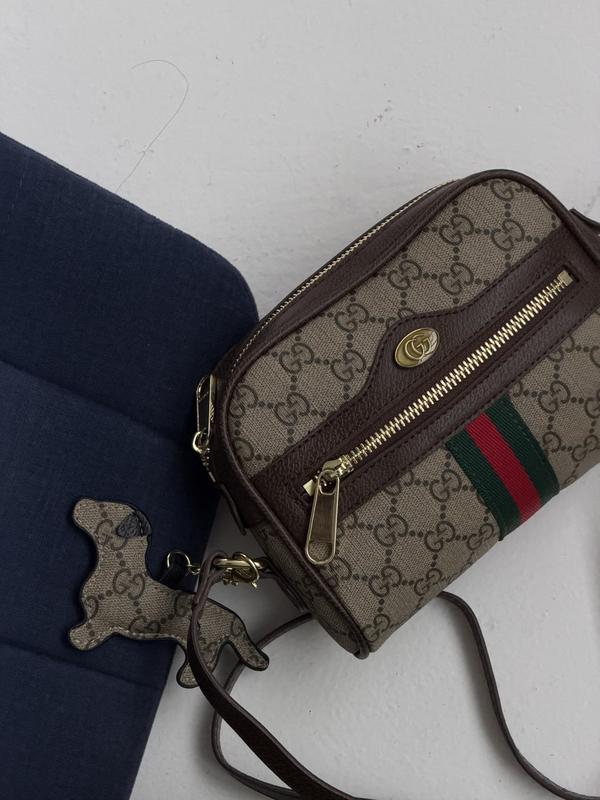 🔠🔠🔠➖🔠🔠🔠🔠🔠 🔠🔠🔠🔠🔠🔠🔠 Сумка Gucci Supreme Ophidia Mini Shoulder Bag код коричневий 20006-1 Сумка виготовлена зі шкіри Усередині — одне велике основне відділення та одна відкрита внутрішня кишеня. Також передбачен ланцюжок із карабіном для ключів. Має логотип із тисненням, бірку з QR-кодом та серійний номер Доповнена брелоком у вигляді собаки Фурнітура — металева, у золотистому кольорі, з брендованими елементами Матеріал: шкіра Розмір: 18 × 15 × 6,5 см Ремінець не відстібається, але регулюється. Максимальна довжина ремінця — 112 см ⭐️ Фото додатково файлом в коментарях. ⭐️ Магнітна коробка пильник та документики