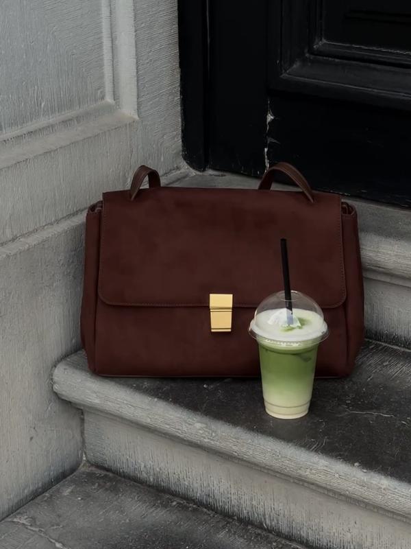 Hilary Faux Suede Shoulder Bag - Dark Brown Оригінал! Коробка, пильник Основний матеріал: штучна замша Матеріал підкладки: поліестер 34 см x 24 см x 12 см Падіння ручки: 26 см Золоте обладнання 1 Незнімний і нерегульований ремінець 1 Кишеня На Блискавці Підходить для 11-дюймового iPad Pro та всіх розмірів телефонів, які менші за нього