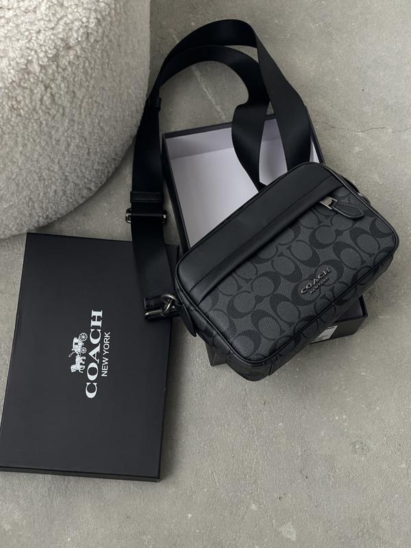 🔠🔠🔠 〰️🔠🔠🔠🔠🔠🔠🔠 Сумка чоловіча COACH GRAHAM CROSSBODY код: Сумка виготовлена з телячої шкіри з фірмовою канвою. Одне відділення на близкавці велике. На лицьовій стороні карман на близкавці. На звороті карман відкритий. Підкладка чорна з срібними логотипами та нашитий логотип Якісна фурнітура з логотипами Ремінець із щільного текстилю, має регульовану довжину - максимальна 140см Розмір: 23*15*6см Матеріал: шкіра