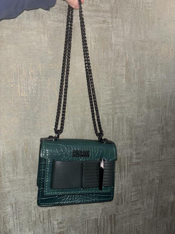Сумка зеленого кольорі з жилізними русками з цікавим замком