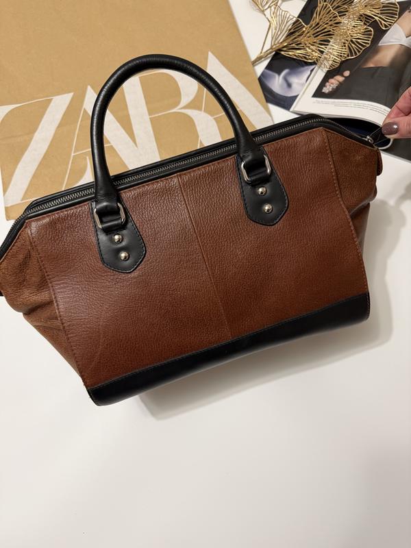 Сумка з натуральної шкіри грубої текстури Має велике відділення Розмір довжина 44, висота 22 дно 21 Є потертості шкіри по боках, що придає шарму. За бажанням можна підфарбувати, але можна носити і так