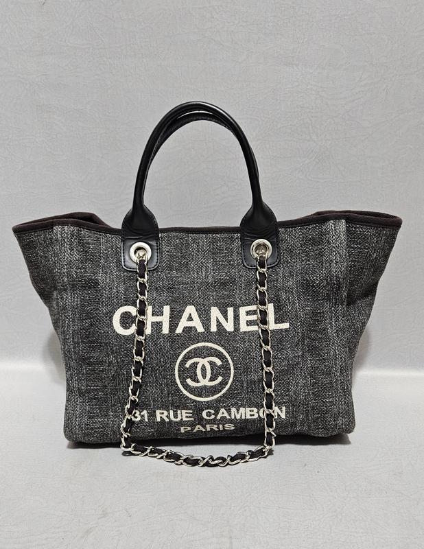 красива сумка Chanel, номерна плотный коттон + ручки из натуральной кожи, р. ширина сверху 47 см, ширина по низу 35 см, высота: 27 см, толщина 20 см, высота ручек 12 см, цепочки высота 28 см, Стан 5+, Цена 3800 грн