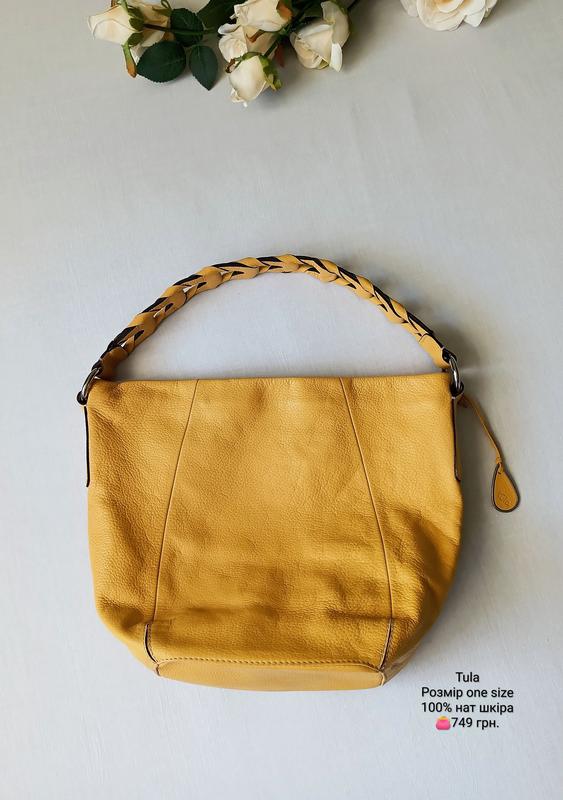 Сумка кожа от Tula. Размер one size. Состав: 100% натуральная кожа. Замеры: длина 28 см, ширина 35 см, ширина дна 13 см, длина ручки 43 см. Состояние новое.