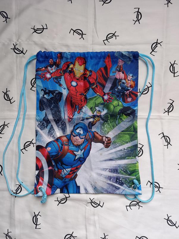 Это сумка для обуви или мелочей с изображением команды Мстителей (The Avengers). Размер 30*42 см.