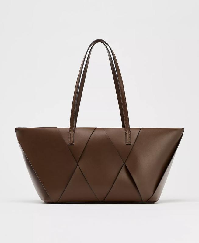 Сумка Zara виготовлена з еко шкіри, в ідеальному стані, дуже вмістка, гарно тримає форму. Має форму трапеції, ширина знизу - 32 см, ширина зверху - 50 см, висота 22 см, глибина - 15 см.