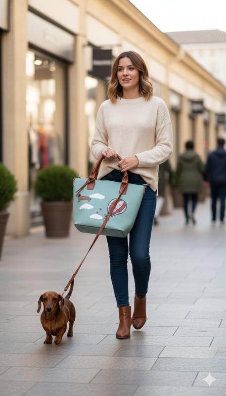 Продам оригинальную женскую сумку нежно-мятного (фисташкового) цвета с невероятно милым принтом. Главная изюминка - аппликация таксы в корзине воздушного шара и фигурная подвеска-такса на рукоятке. Длина ручки 30 см один отдел внутренний котенок на смке