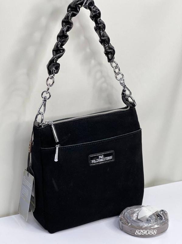 829088 Новинка👜❤️🔥 Сумка 3 отделения рюша кожа замш Цвет: черный; красный Размер: 23/24/9 ремешок длинный регулируется цепочка и короткий ремень в наличии 3 отделения ✅ Материал: Натуральная Кожа лак Канадка натуральный замш АS