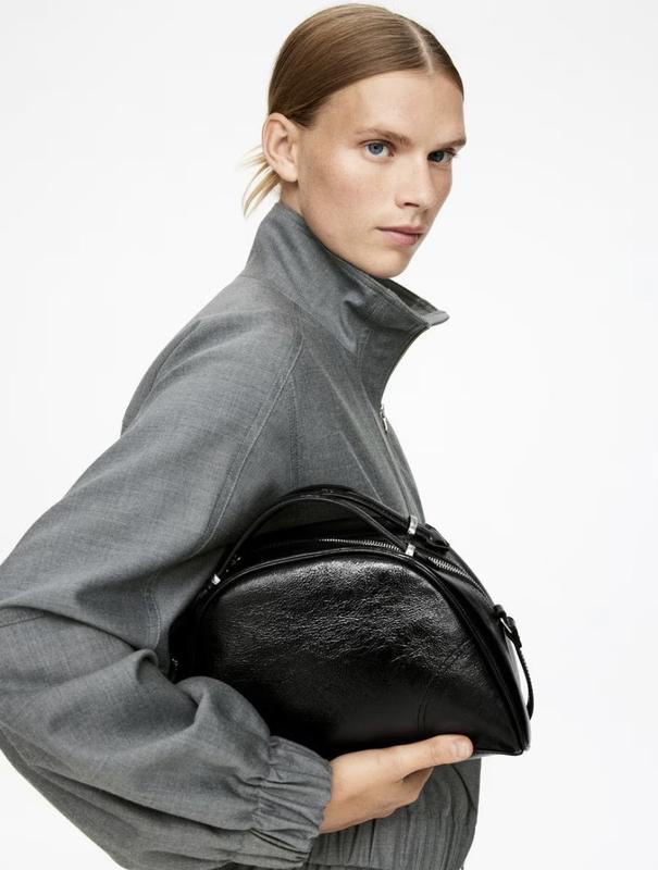 Сумка через плече з лакованої шкіри . Дизайн у формі півмісяця з короткими ручками та довгим регульованим ремінцем. Декоративна подвійна строчка, застібка-блискавка та внутрішня кишеня. Відмінна якість , ідеальний розмір , дуже зручна вмістка , якісна мінімалістична фурнітура . Виглядає дорого та ефектно