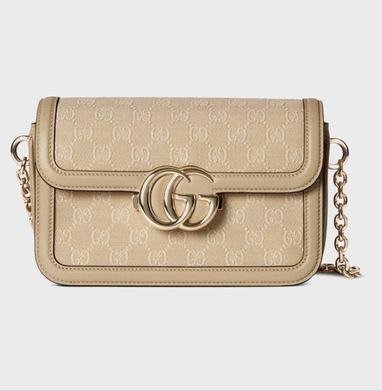 ✨Новая модель✨ 👜 Gucci Go Bag Beige 👜 (Арт : 05029) Премиум качество⭐️ 📐 Размер: 21,5 х 14 х 6см 🧵 Материал: Кожа с канвой 🔎 Описание: Сумка выполнена из гладкой кожи с фирменной канвой. Внутри одно основное отделение и три кармана (один из которых на застежке), сзади сумки маленький декоративный карман. Подкладка у сумки текстильная. Сумка закрывается на слитный механизм. В комплекте ремешок для ношения через плечо - кожаный, регулируется. Сумка на цепочке, вся фурнитура золотого цвета, брендированная. Упаковка: брендовая коробка на магнитах, пыльник и документы.