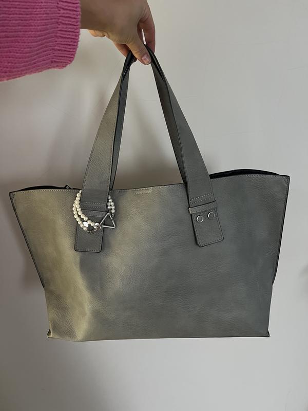 Сумка сірого кольору, вмістка. Стан ідеальний, але має потертість внизу (дивіться останнє фото), в носці непомітно.