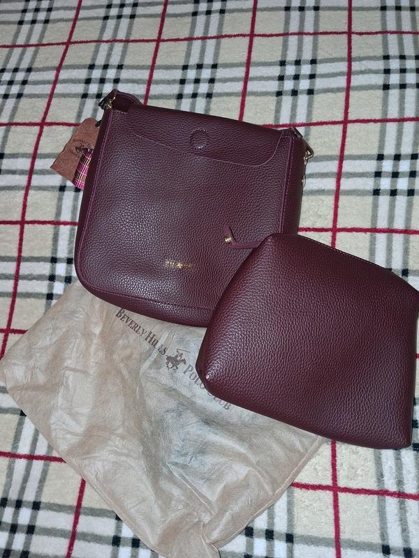 Сумка новая,женища BH&PC, яркого цвета бордо,з очень качественной экокожи, с косметичкой такого же цвета, которая отстегивается, и текстильной, цветоцветным ремнем. Высота сумки 25 см Ширина 25 см Довжина ременя 70 см.