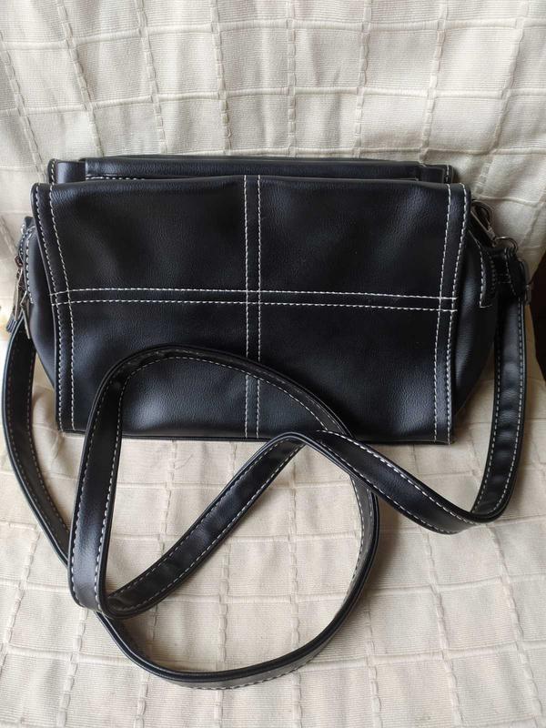новая. Одно отделение, внутренний карманы 2, наружный 1. Короткая и длинная ручки. Качественный кожзам , подкладка- хлопок. 24 см. ширина, высота 17 см. дно-9 см. ремень 120 см.