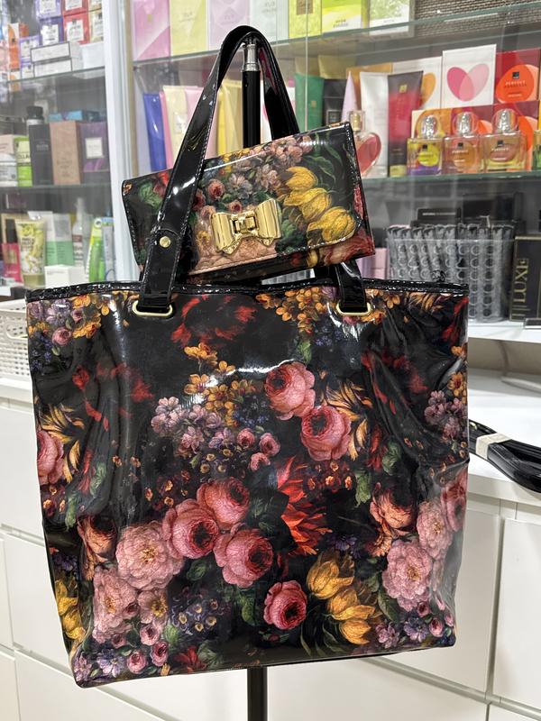 Лаковані сумки і гаманець з раритетної серії від Avon. Сумка містка Розмір сумки 40х30х12 см Має одне велике відділення. Внутрі дві кишені. Одна закривається на блискавку, інша відкрита. У комплекті йде довгий ремінець. Гаманець класичної форми. Розмір у закритому стані 20х10 см Теж доволі місткий. Застібка на «поцілунок». Внутрі відділення для монеток закривається на блискавку. Є 2 відділи для купюр і 6 відділень для пластикових карток.
