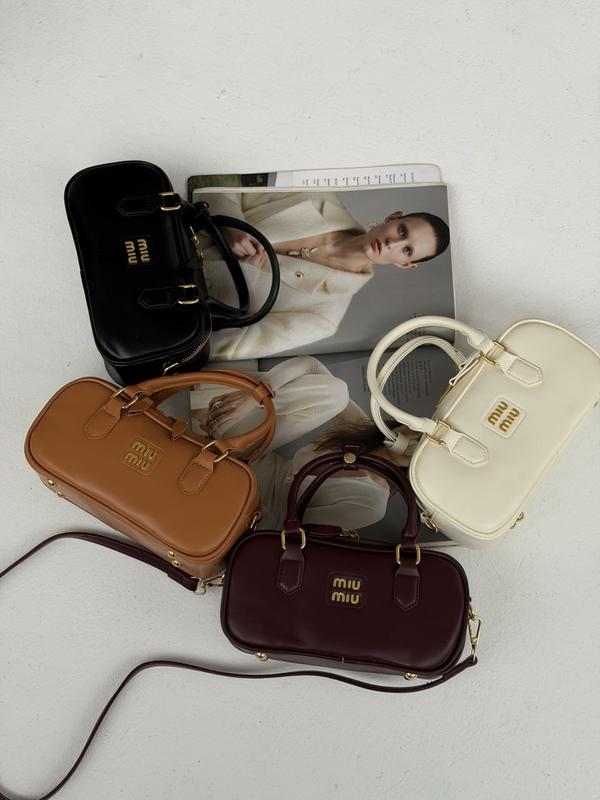Жіноча сумка Miu Miu Arcadie через плече Всередині — одне основне відділення та невелика додаткова кишеня. Підкладка виконана зі щільного текстилю, присутні тиснений фірмовий логотип і бірка із серійним номером та QR-кодом. Дно сумки оснащене металевими ніжками для захисту від зношування. Розмір: 24*12*7см Матеріал: еко-шкіра Фурнітура брендована У комплекті — вузький регульований ремінець для носіння через плече. Максимальна довжина ремінця — 116 см.