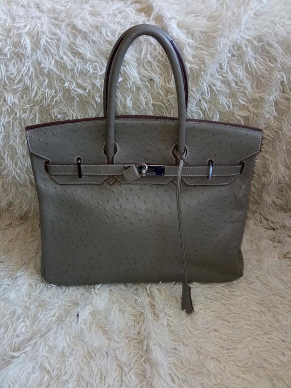 Сумка из кожи страуса, состояние отличное, есть нюанс на ручках, слегка потертый угол, размер 30*35 см