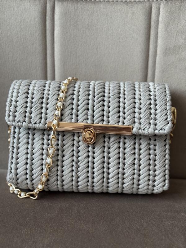 Стильна вʼязана сумка ручної роботи, виконана з якісної пряжі. Ідеально підходить як для щоденних образів, так і на вихід. Деталі: • ручна робота • надійна металева фурнітура золотого кольору • ланцюжок з декоративними перлинами • добре тримає форму • легка, але містка Чудовий варіант на подарунок.