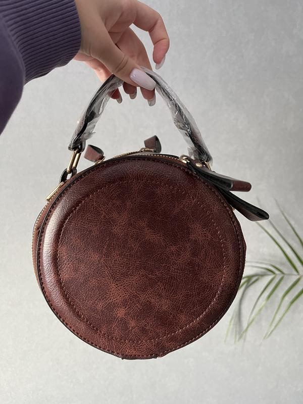 Кругла коричнева нова сумка. Має додатковий ремінець, зручна для носіння на плечі або через плече.